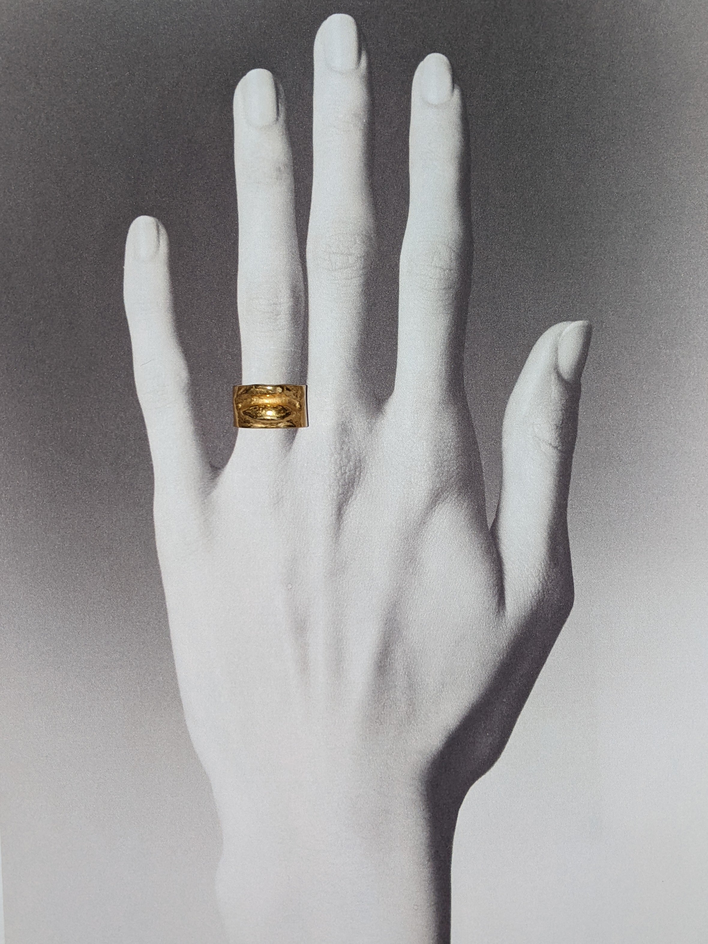 This ring comes from a casting of a sculpture on the door of the Museum of Modern Art in Paris. Wearing this jewel means carrying a piece of the city with you.