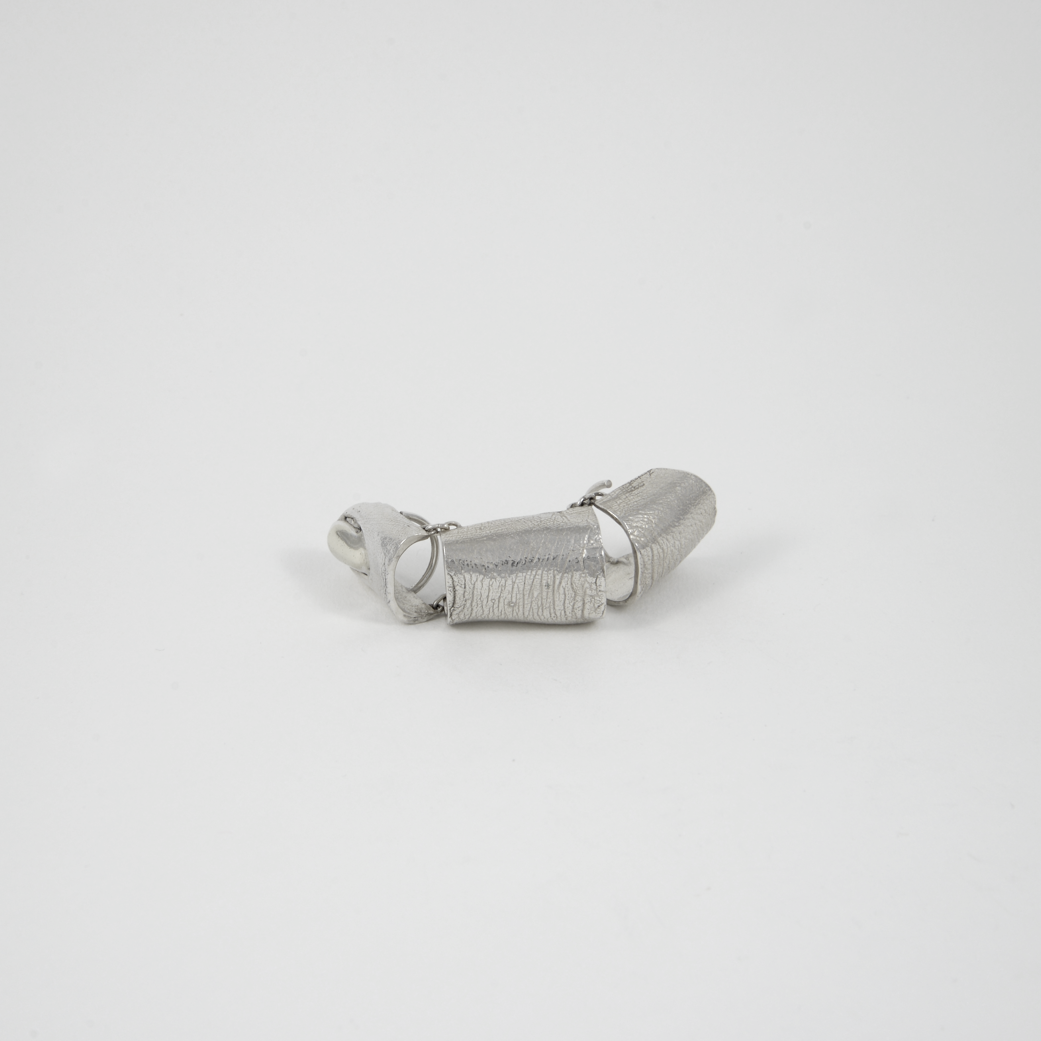 The attachment system is simple, it consists of two open rings (therefore adjustable). The articulation of the phalanges is done using small rings which allow the movement of the finger. It features a subtle articulation that gives it unique flexibility. This characteristic allows a perfect adaptation to the morphology of each finger, ensuring exceptional comfort.
